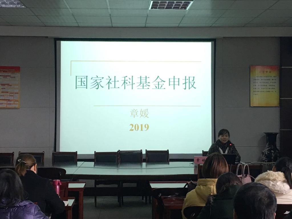 12月7日下午,我校邀请合肥师范学院章媛教授来校进行国家社科基金申报培训。科研处、相关学院负责同志、博士、高级职称教师及预申报2020年国家社科基金教师参加培训会,会议由科研处副处长俞念胜主持。