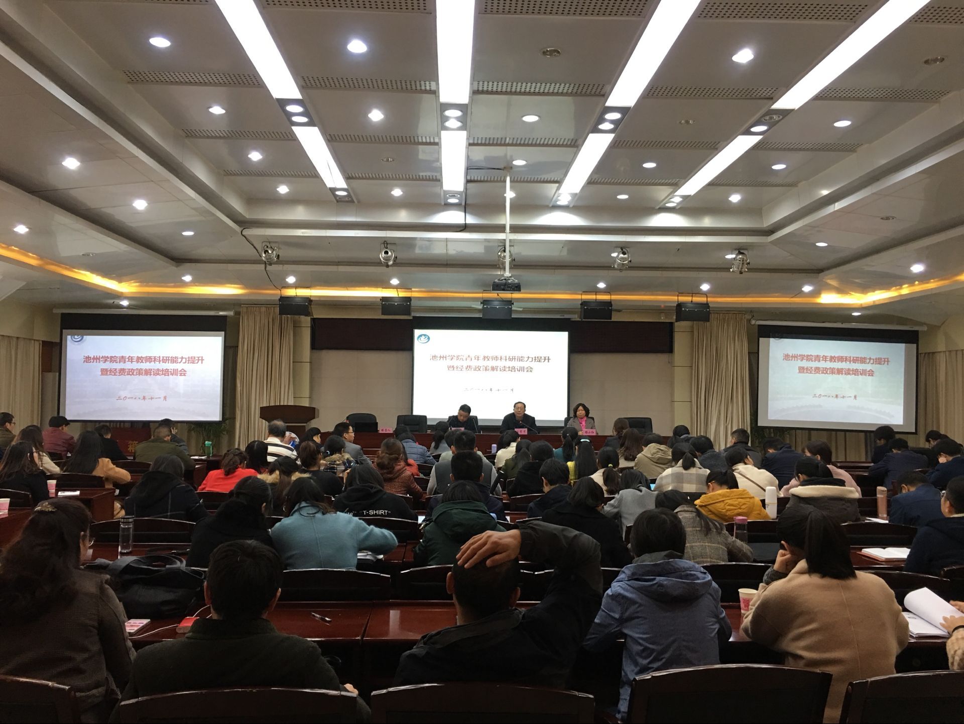 11月21日下午,我校在行政南二楼学术报告厅成功举办了“青年教师科研能力提升暨科研经费政策解读”培训会。副校长汪贤才出席会议并作重要讲话,全体校、厅级在研科研项目主持人及拟申报科研项目人员近150人参加,培训会由科技处副处长余义兵主持。